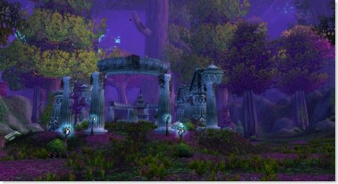 But Astranaar meant people – a fair number of them about for such a late hour.  Perhaps because it was nearly daylight under the full twin moons.  Lost in thought, and trying to escape the crowd, she headed out on foot down to the Shrine of Aessina, hoping to find at least some solitude, if not solace, in the temple of the wilderness spirits.